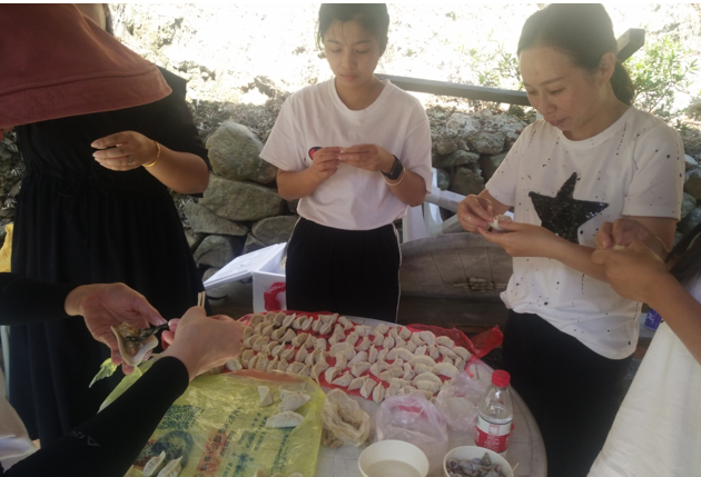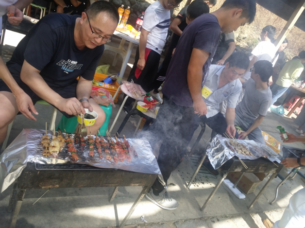 上午達(dá)到目的地后,各小組有條不紊的開(kāi)始了第一項(xiàng)活動(dòng)-自主烹飪。大家烹飪的內(nèi)容也是豐富多彩,有燒烤、火鍋、包餃子、還有本地特色豬肉飯。平常不怎么露手的各位可都深藏不露,在公司里研發(fā)中心團(tuán)隊(duì)可是有著燒烤達(dá)人美稱的。今年又新晉一組美食達(dá)人團(tuán)隊(duì)總裁、人力組,因?yàn)樗麄兂晒Υ蚱屏送陰状螣i肉飯失敗案例,這個(gè)逆襲非常漂亮!毫不低調(diào)的說(shuō)風(fēng)馳這個(gè)大家庭里有著廚師級(jí)別的成員也是高手云集的。經(jīng)過(guò)一番忙碌之后,大家心滿意足的享受完一起親手烹飪的美食。