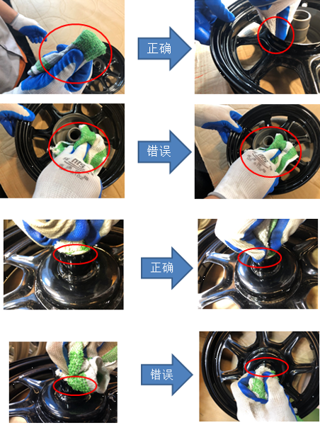 首先、朱新華主任針對(duì)8月份客戶反饋不良信息及不良圖片與在座培訓(xùn)人員展開細(xì)節(jié)講解,他于會(huì)上提到:8月份特黑產(chǎn)品共計(jì)發(fā)貨6180只,其中不良的前輪有76只,后輪96,不良占比2.78%。上述的這些不良,都是由于我司員工在蘸取藥劑進(jìn)行擦拭過程中,沒有嚴(yán)格按照作業(yè)標(biāo)準(zhǔn)及其注意點(diǎn)而產(chǎn)生的。這些不良又都是需要經(jīng)過一段時(shí)間后才能顯現(xiàn),所以,過程中的標(biāo)準(zhǔn)作業(yè)對(duì)于問題的杜絕顯得尤為重要。