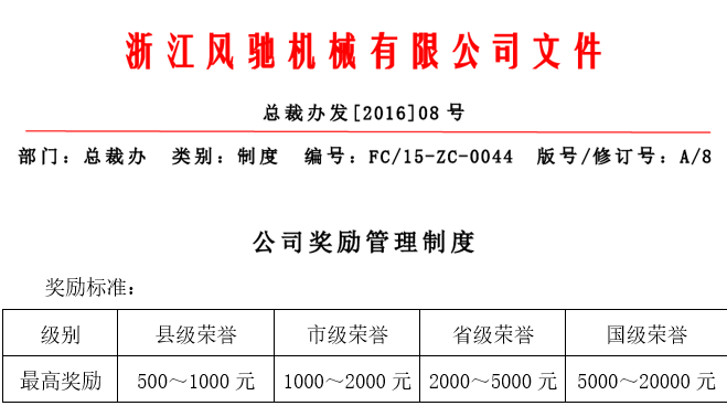 我司為了相應政府號召,鼓勵符合要求的員工代表企業(yè)參加各項比賽和評選活動,特完善了獎勵政策,對于員工代表企業(yè)在各類比賽或評選中獲得名次及成功入選,為公司贏得榮譽,一經(jīng)核實公司將給予特別榮譽獎,并額外給予積分獎勵。