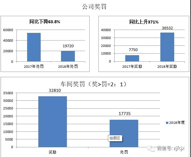 為了激勵員工時刻圍繞公司的核心價值觀,鼓勵員工奮發(fā)向上,促進(jìn)企業(yè)不斷完善改進(jìn),做到獎罰分明,堅(jiān)持以獎勵/處罰=2:1原則,公司制定了《公司獎罰管理制度》和《車間獎罰管理辦法》,雙管齊下,2018年相比2017年獎勵金額同比上升371%,處罰金額同比下降63.8%,違章次數(shù)同比下降69.7%,管理上有了很大的提升,數(shù)據(jù)體現(xiàn)如下:
