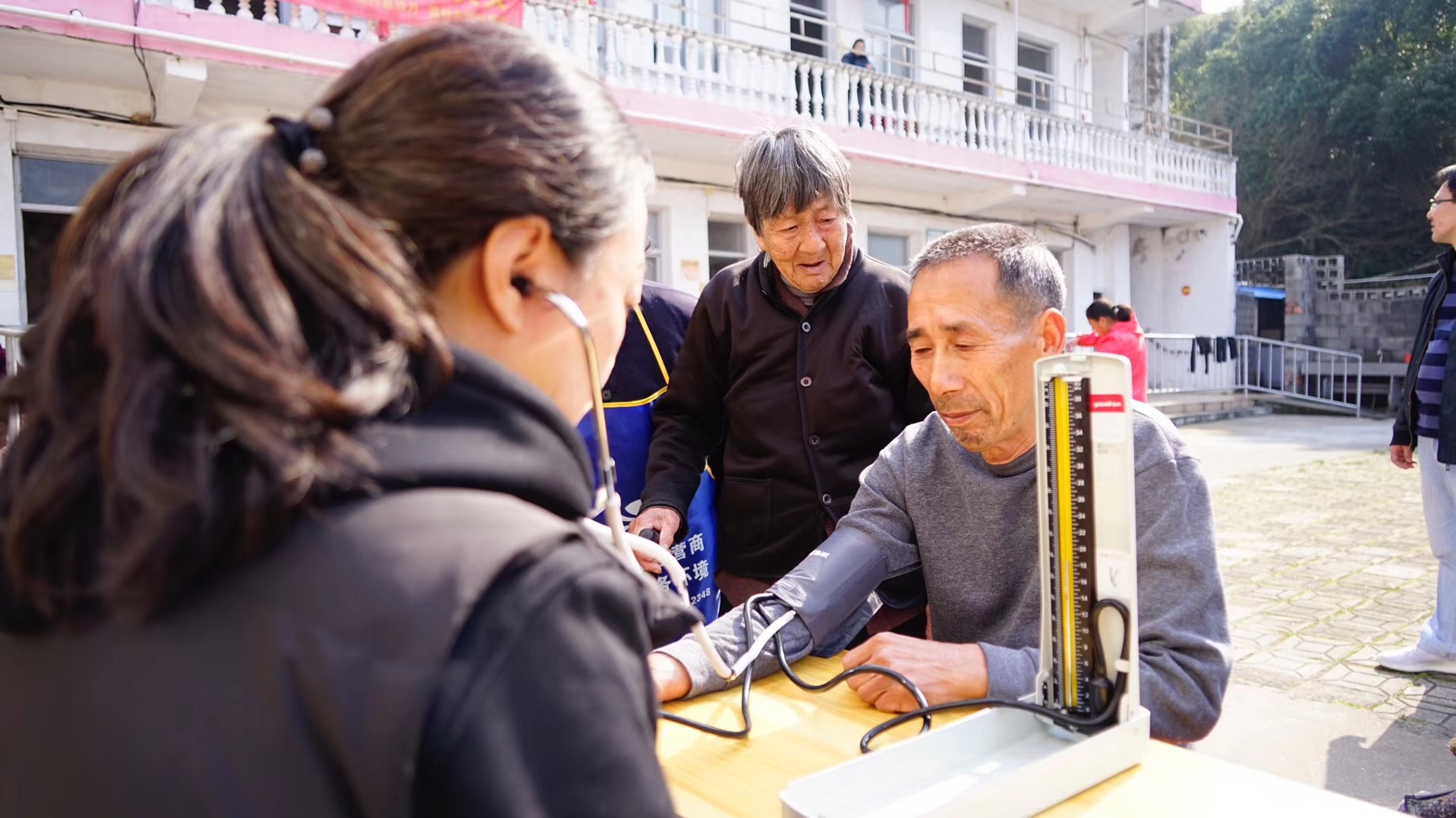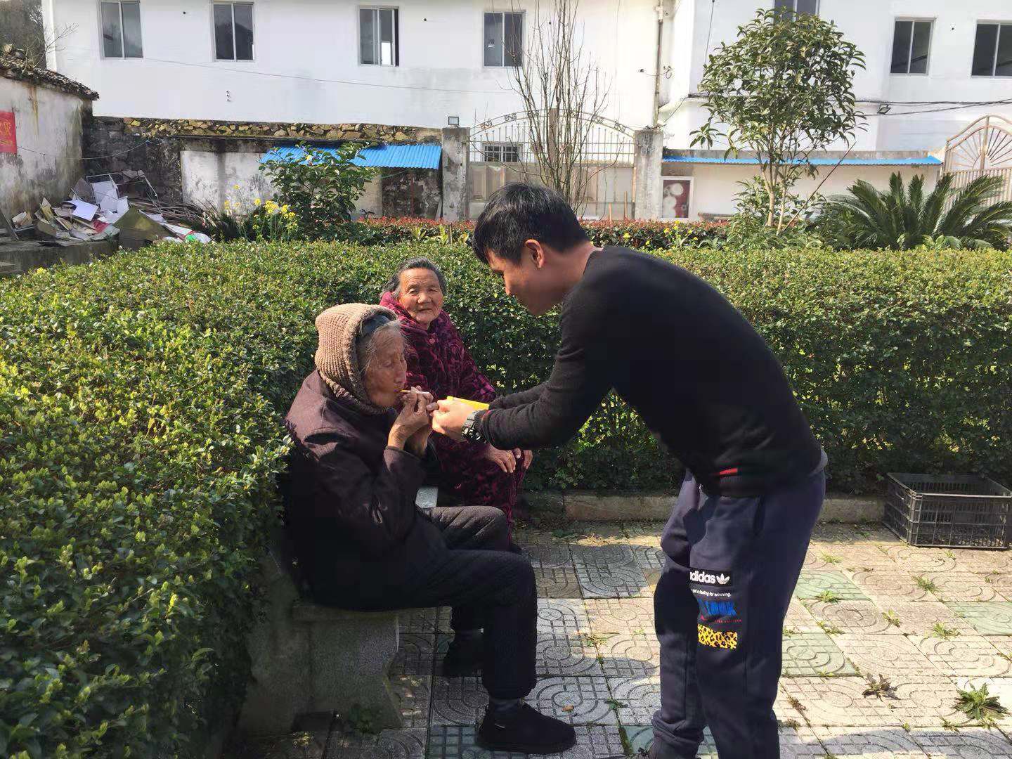 中午時分,公司董事長潘衛(wèi)民、財務(wù)總監(jiān)呂良君親臨烏坑山頭,他們倆一如往常的微笑,一如往常地握著老人們的手,他們沒有言語,只是微笑,只是與老人們點頭,我們只是看著,老人們的手分明握得緊緊的,緊緊的……